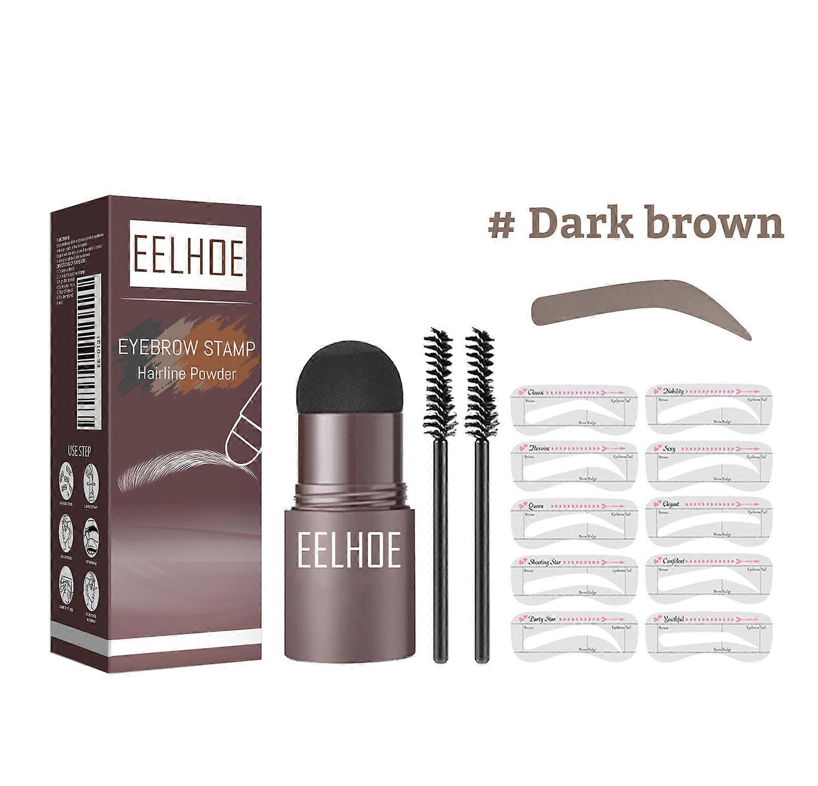 EELHOE Eyebrow Imprint Mold, Eyebrow Filler, Makeup Powder, Hairline Powder, Waterproof and Sweatproof, Dark Brown Set - Boxed-jc
