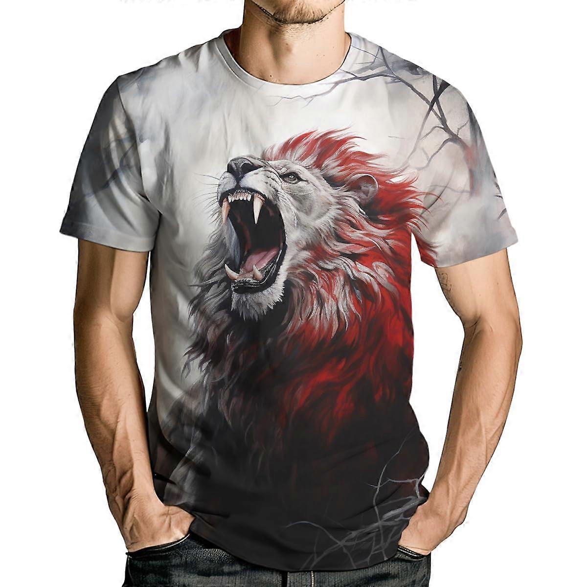 Men’s 3D Lion Roar Graphic T-Shirt - Red Mane Angry Lion Print Short Sleeve Casual Fashion Tee