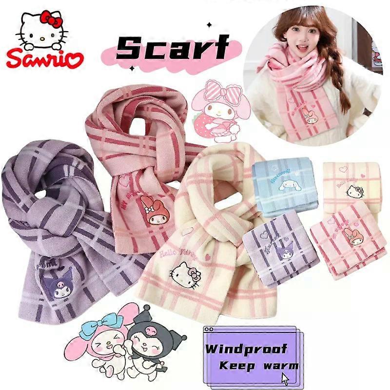 Sanrio My Melody Kuromi Hello Kitty Anime Cartoon Cute Double-Sided Knitted Scarf Kawaii Girl Heart Warm Winter Neck Warmer Gift