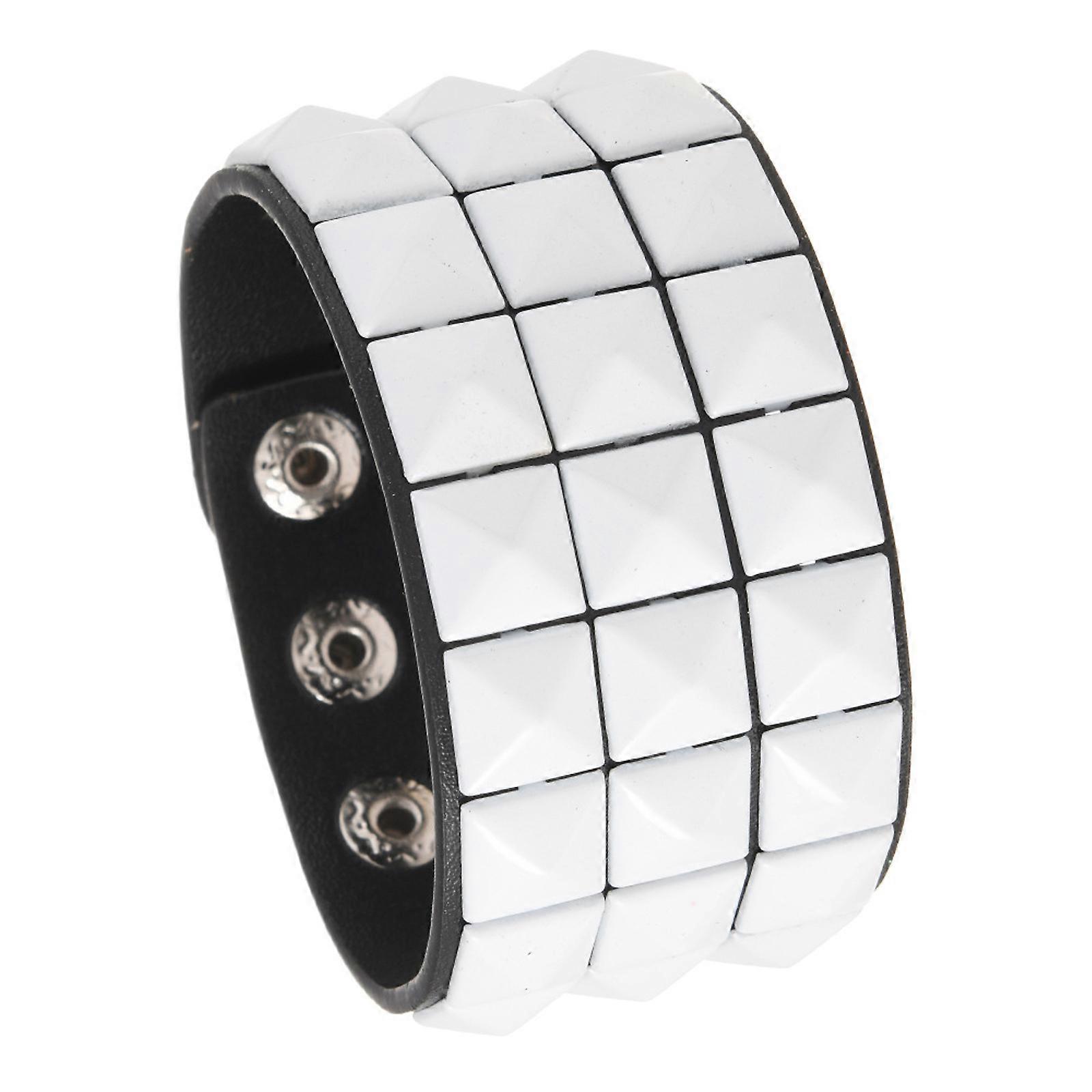 PU Leather Bracelet with Square Studs Adjustable Punk Style Wrist Bangle for Him Her Unisex Jewelry Present White
