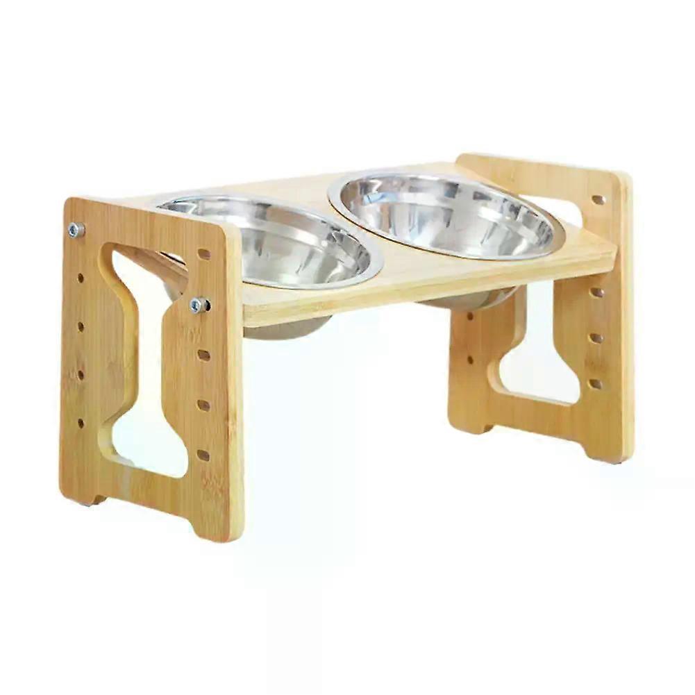 Elevated Dog Feeder Bowls Adjustable Raised Stand Wood Bowl Water Pet Cat Accessories Double Stainless Food Dog Steel D0H5