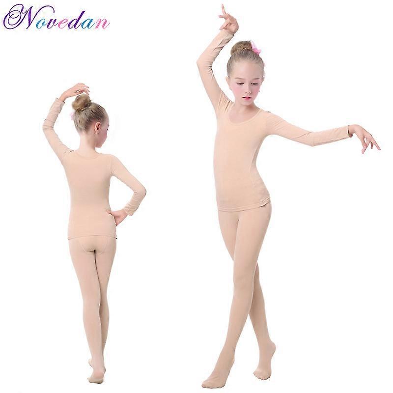2020 Warm Girls Ballet Underwear Nude Dance Full Bodysuit Tights Thick Ballet Warm Up Stretch Dance Wear For Kids Leotard Sets