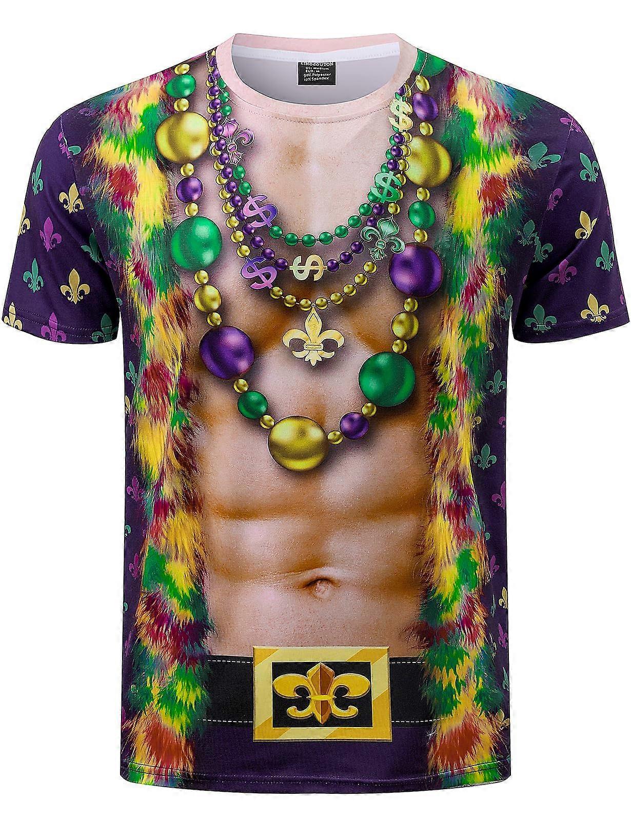 Men's Mardi Gras 3D Print T-Shirt - Feather Bead Fleur De Lis Graphic Casual Short Sleeve Tee