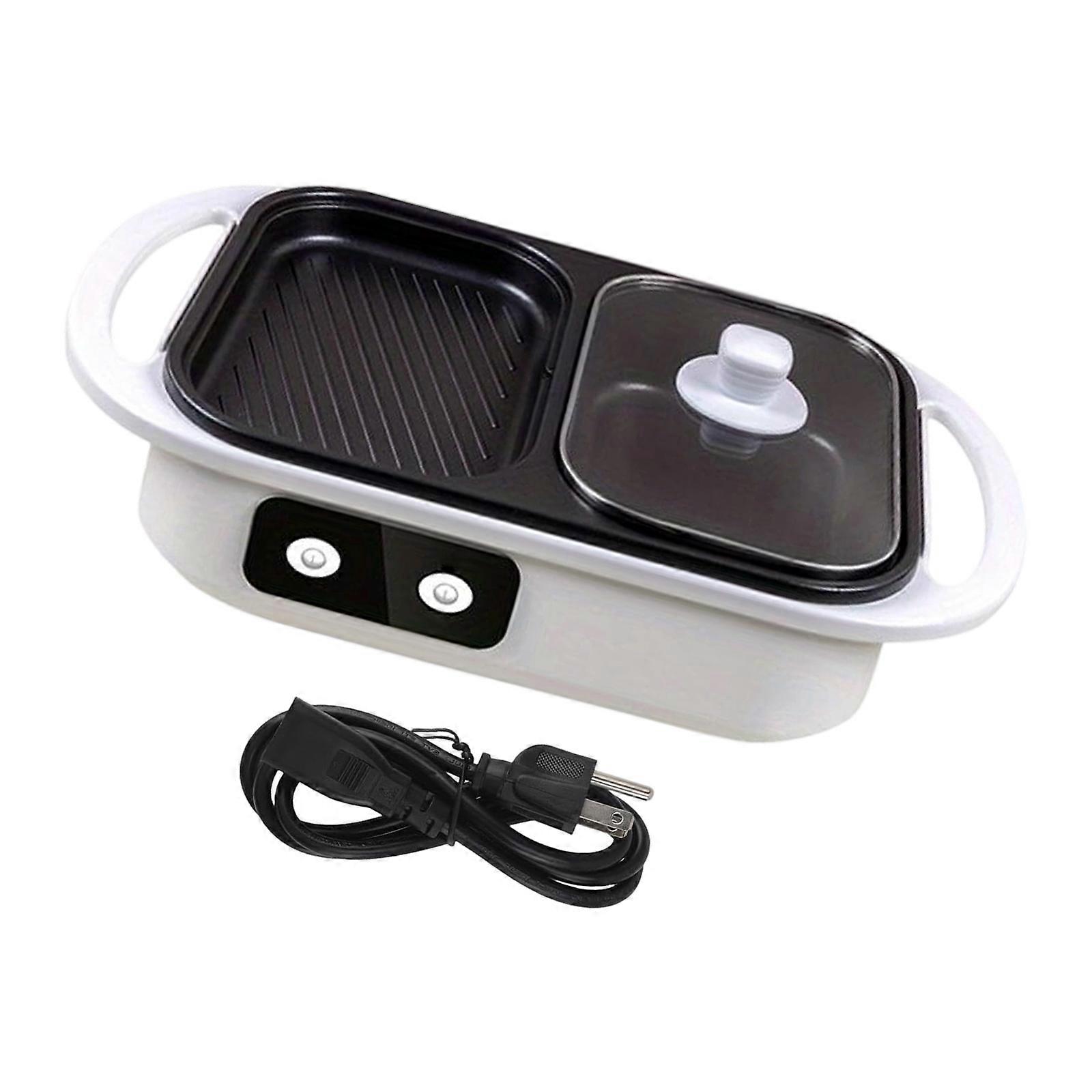 Multifunctional Electric Hot Pots Grill Plate with Adjustable Temperature Control and Nonstick Coating Suitable for BBQ White