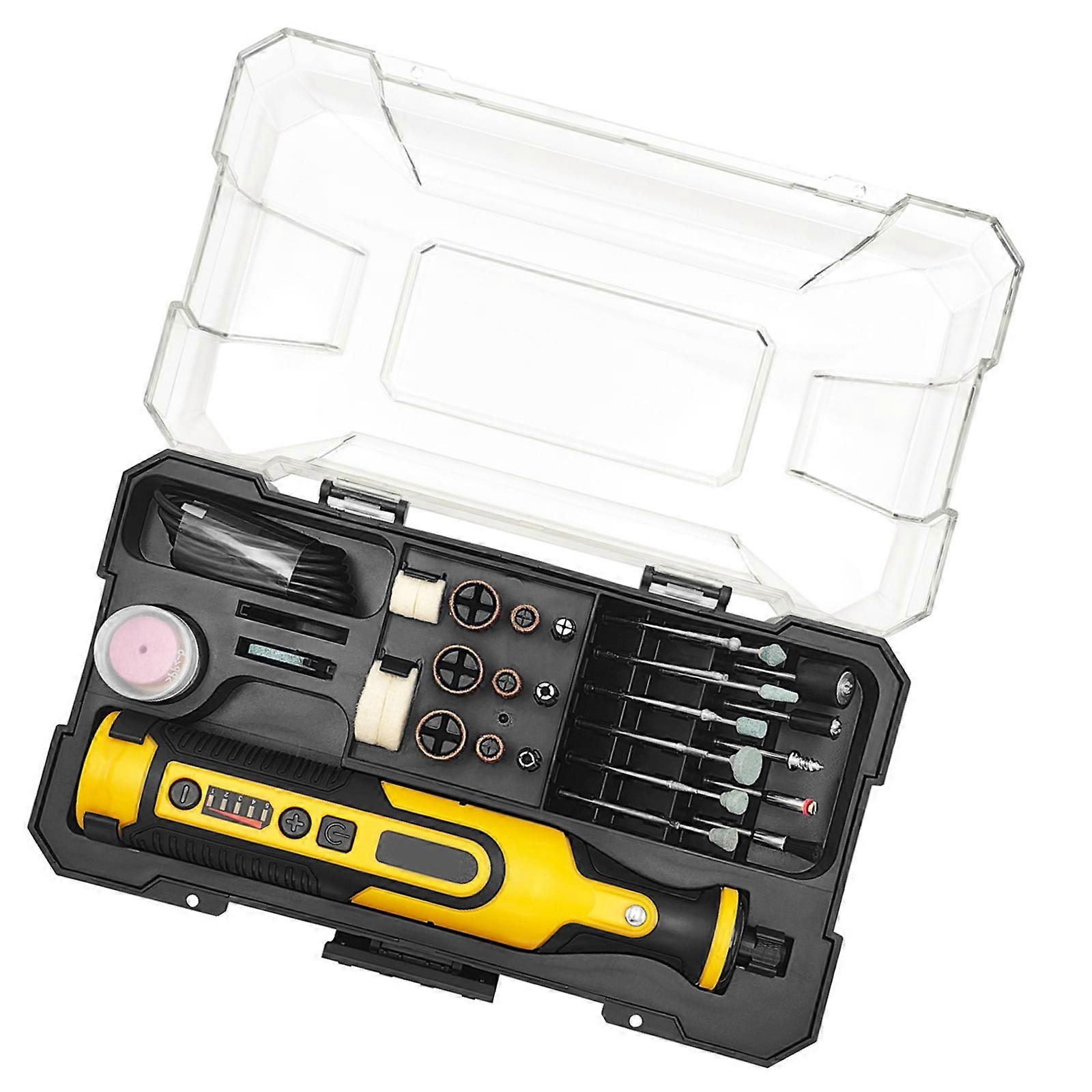 Features: Advanced Charging Security: Features intelligent charging security structure to minimize battery wear and secure security during charging, with a clear rose measure light showing the charging condition. High Accuracy Double Bearing Structuremail: Armed with a high concentricity double bearing plan for decreased throb and strengthened stability during engraving and crushing tasks. Flexible Crushing Executivesecond: Includes multiple exchangeable crushing executives for various engraving and polishing demands, offering flexibility across different circumstances. Usb CREATE Fast Charging & Long Battery Lifemail: Backs Usb CREATE fast charging with a constructed in 1100mAh lifepo4 battery, providing up to 103 periods of continuous runtime for uninterrupted creativity. Ergonomic & Transportable Planumberepeat: Thin and compact for easy handling, making it ideal for home undertakings while ensuring comfort and control during extended use. Specifications: Product substancemail: ABS Single set size 249x141x63mm Single set weigheight: 712g Denial load speeducated: 8000~28000r/min Toss sizemail: 2.35/3.2mm Machine sizemail: 203x37x36mm Battery capacity: 1100mAh Visual machine weigheight: 217g Product potentiall: 7.2V Package Includes: Hostx1 Data cablex1 note: Pay attention to the storage methods.