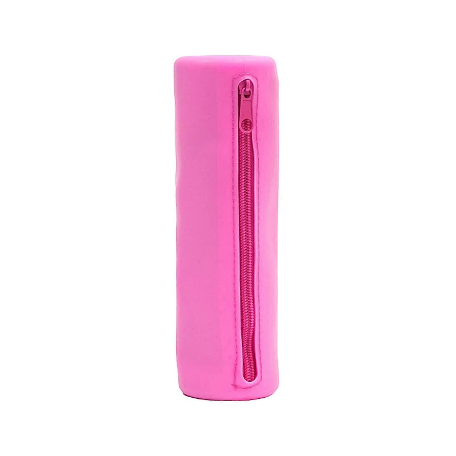 Multifunctional Pen Bag Cylinder Silicone Pencil Case Large Capacity Waterproof Pencil Organiser Pouches For Student Kid Pink