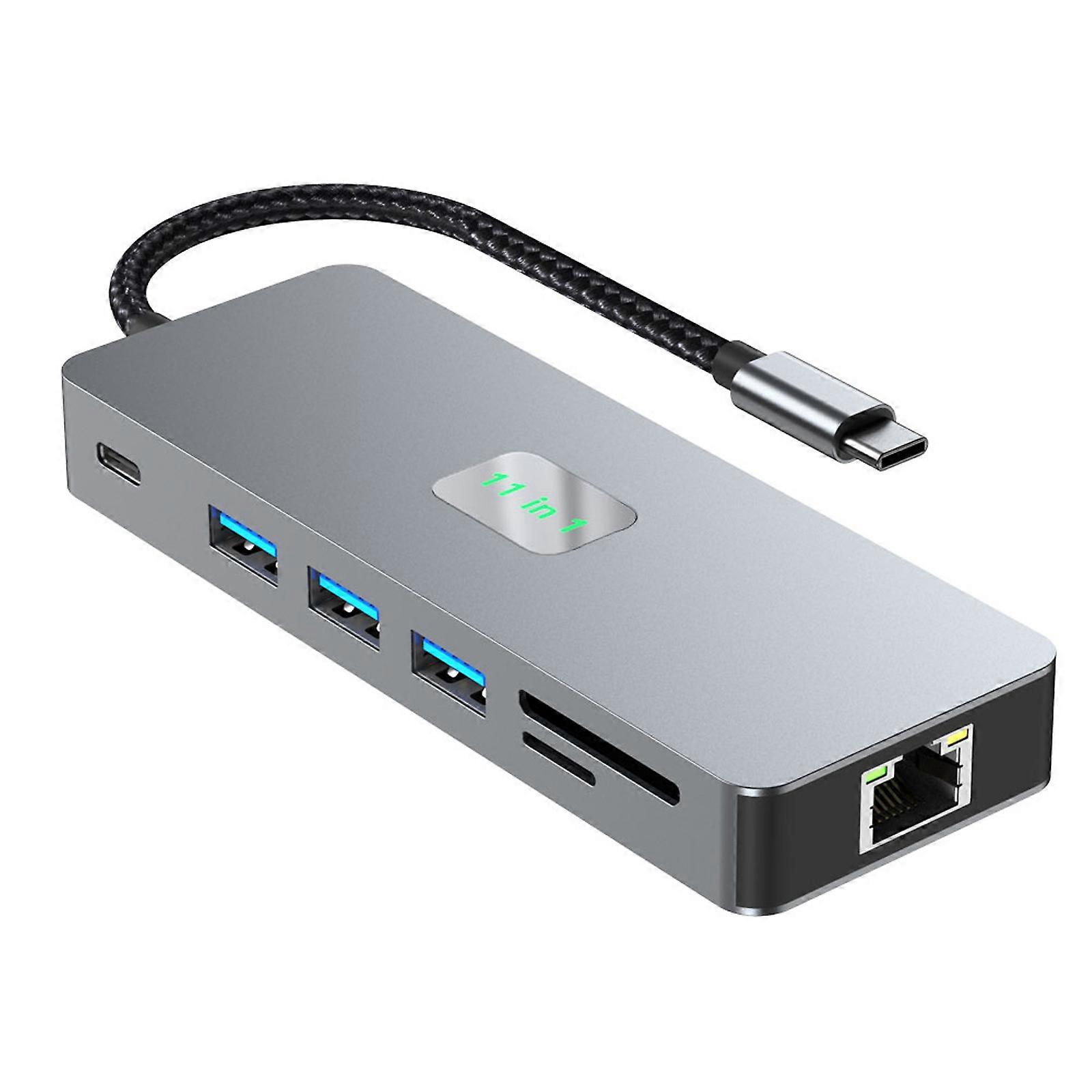 Portable Multiports Hubs Adapters for USB C with HDTV VGA Two Monitor Gigabit Ethernet Card Readers USB3.0x3 PD100W Charging Sound Jacks Compatible