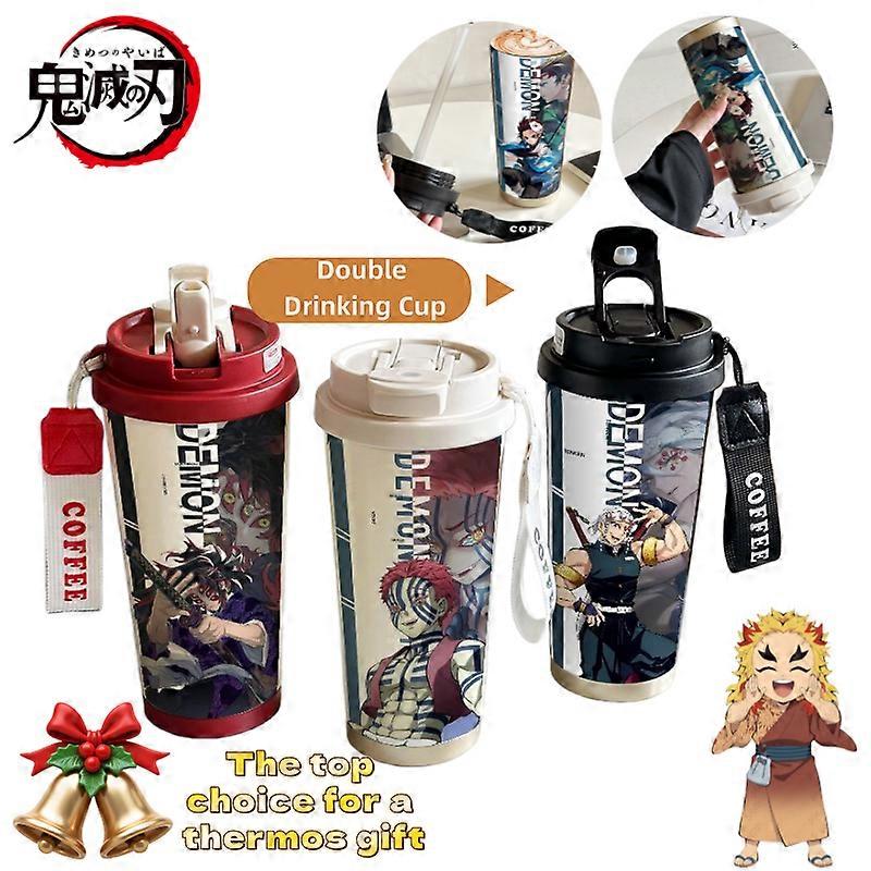 Demon Slayer Kamado Tanjirou Nezuko Iguro Obanai Cartoon Pattern Student Insulated Mug Stainless Steel Large Capacity Water Cup