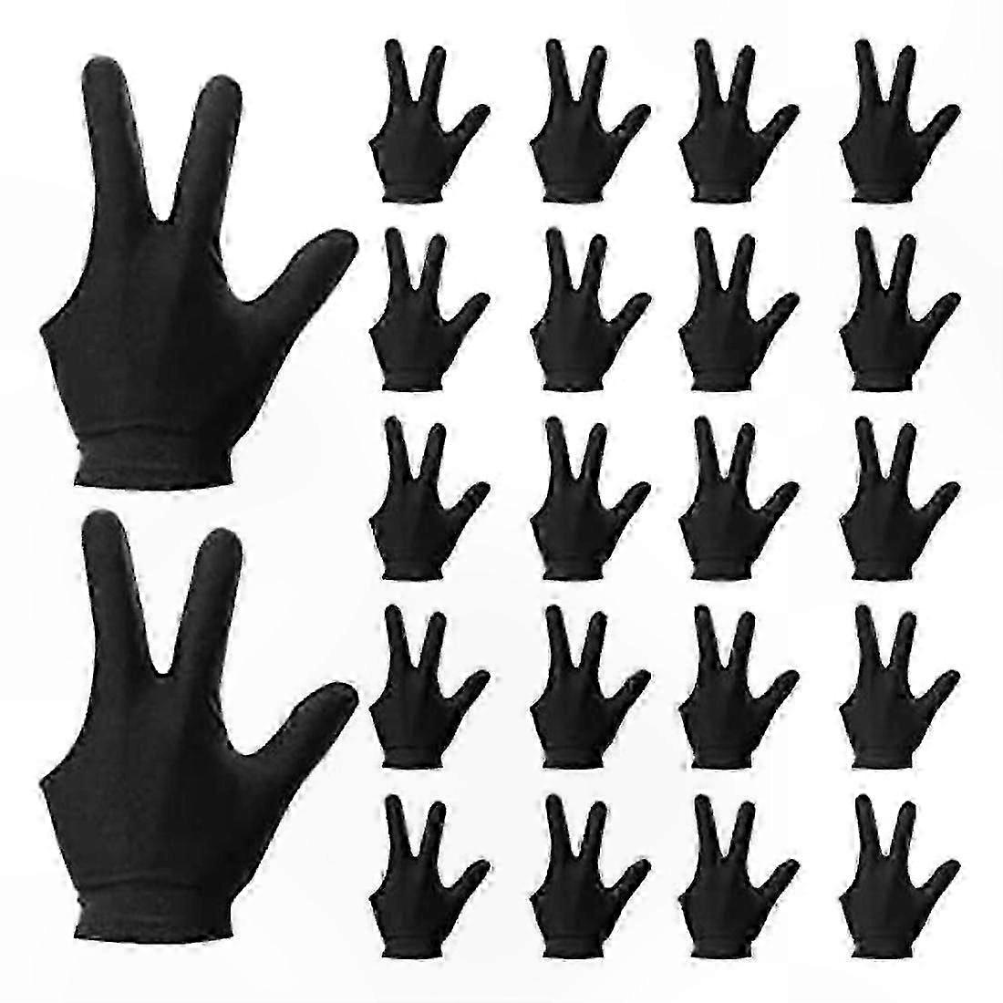 22-Pack 3-Finger Billiard Gloves for Pool Sports, Unisex Design for Both Hands, Black