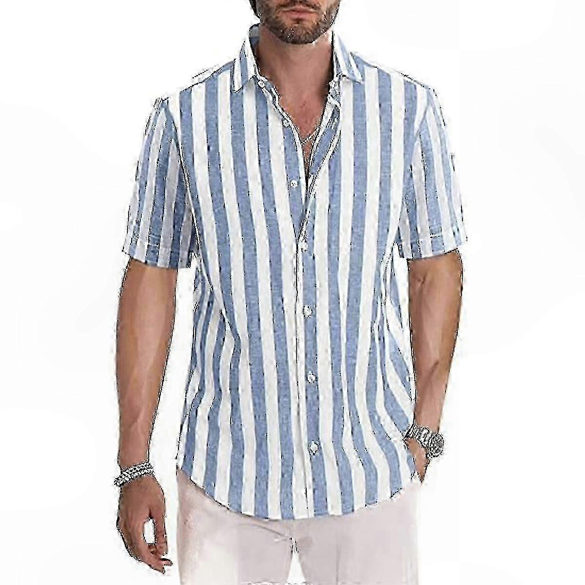 Casual Short Sleeve Shirts for Men with Striped Pattern