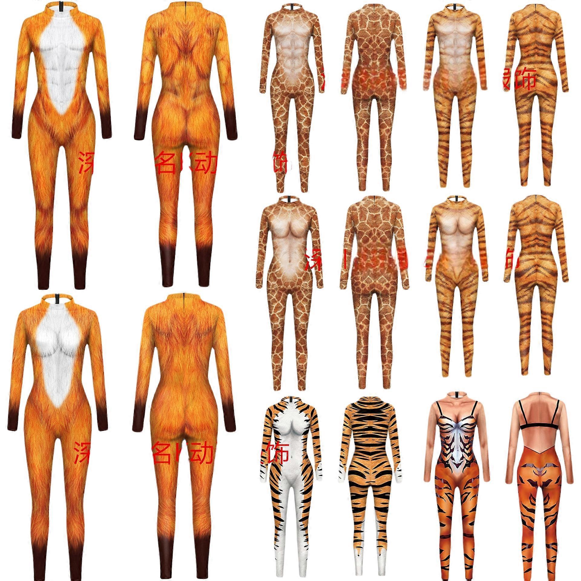 Animal Cosplay Women Jumpsuit Tiger Fox Leopard Giraffe Costume Kids Adult Halloween Party Zentai Suit Bodysuit Cosplay Costume