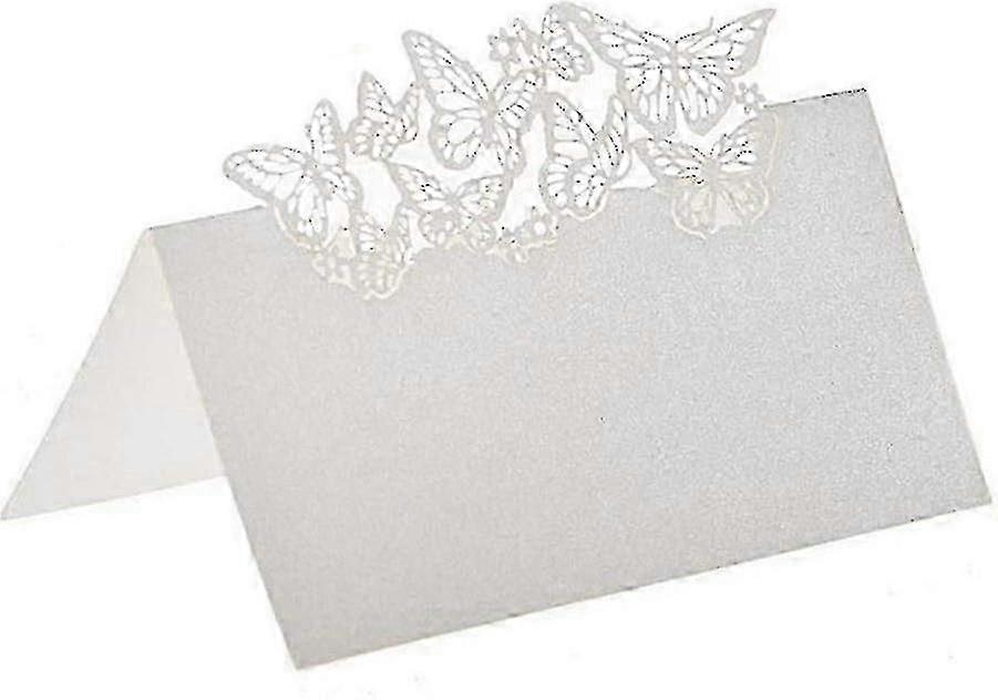 100 Pcs Pearl White Butterfly Place Cards, 12x9cm Foldable Wedding Table Name Cards