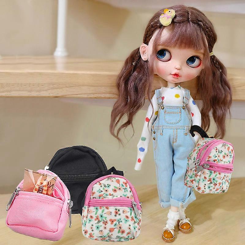 Miniature Doll Bag Toys for BJD Dolls Zipper Backpack Cute Flower Schoolbag Dollhouse Decor Rucksack Dolls Clothes Accessories