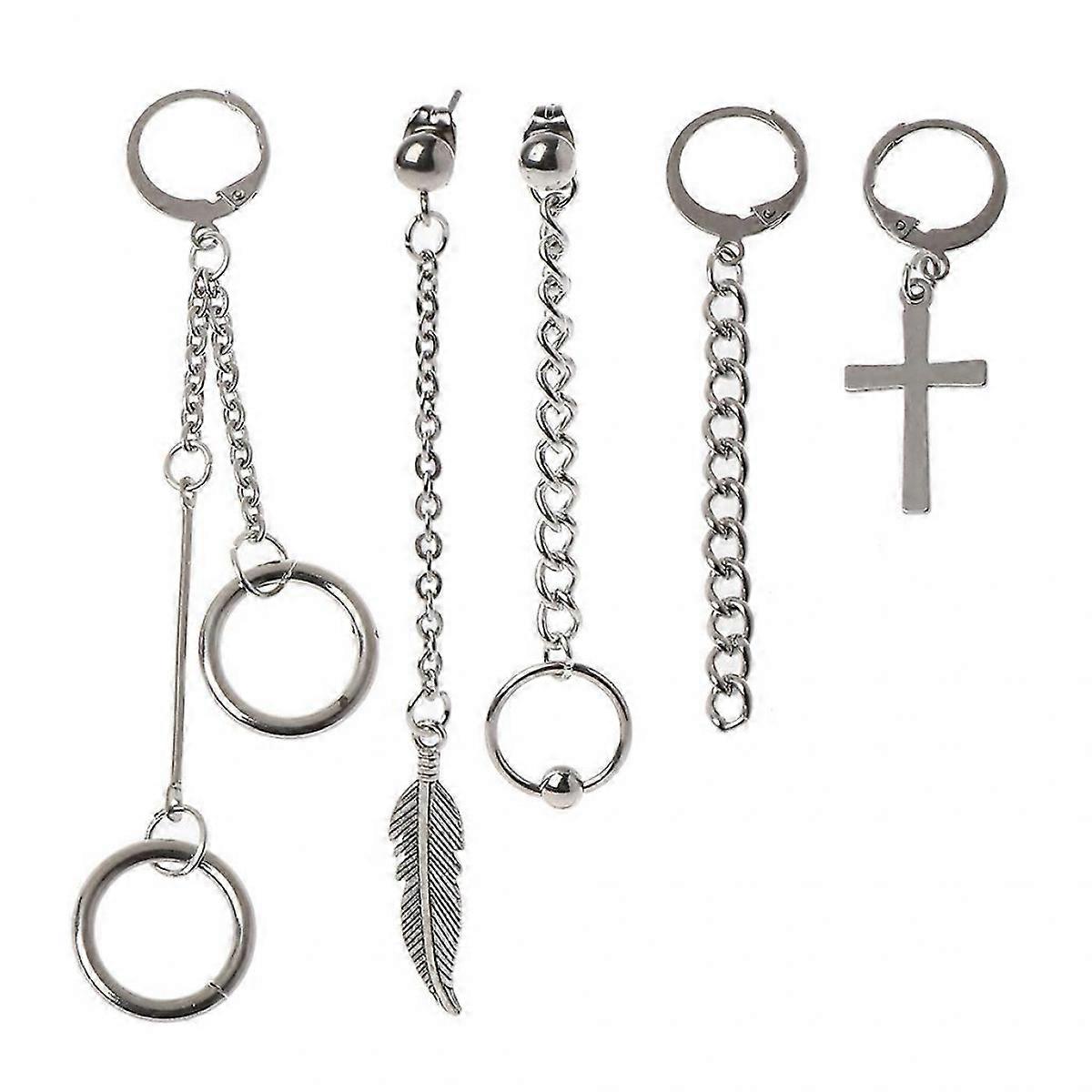 ["Feature:r<br> Comes 5 different tassel drop earring in one set,r<br> Including double circle tassel, single circle tassel, feather pendant, for cross pendants ,and so on.r<br> You can match these at random, all are made of for Titanium Stainless steel ,r<br> High quality, healthy, and anti-rust,fashion cool boys or girls earrings.r<br> It is Korean Jewelry Fashion, the same style belongs to Korean Idolsr<br> Fashion and pretty, make you more attractive, your own styler<br> r<br> Material: for Titanium Stainless steel,r<br> Color:Sliverr<br> Size:r<br> Circle Diameter:1.2 for cm/0.47"r<br> Tassel Length:3-9 for cm/1.2"-3.5"r<br> Quantity: 5 Pcs.r<br> r<br> Note:r<br> Size for manual measurement, there may be a 0 to 2 for cm error, belongs to the normal phenomenon.r<br> And due to the difference between different monitors, the picture may not reflect the actual color of the item. Thank you!r<br> r<br> Package Includes: r<br> 5 Pcs Earrings."]