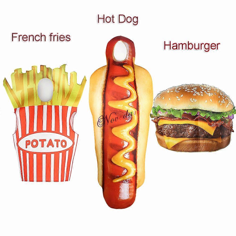 Adult Funny 3D Print Hamburger French Fries Sausage Hot Dog Costume Cosplay Halloween Men Women Family One-Piece Food Costume
