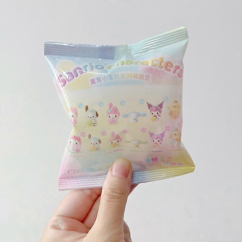 Sanrio Hello Kitty My Melody Flocking Fluffy Kawaii Anime Figure Cute Mini Doll Blind Box Toys Collection Ornaments Kids Gifts