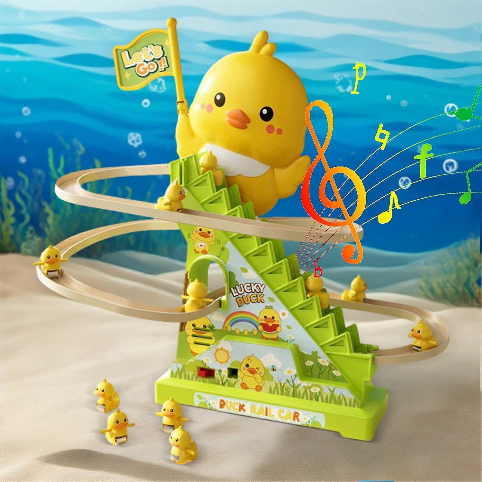 Duck Climbing Stairs Toy Slide Rollercoaster Electric 12-Duck Climbing Toy LED Flashing Lights Music Early Learning Game