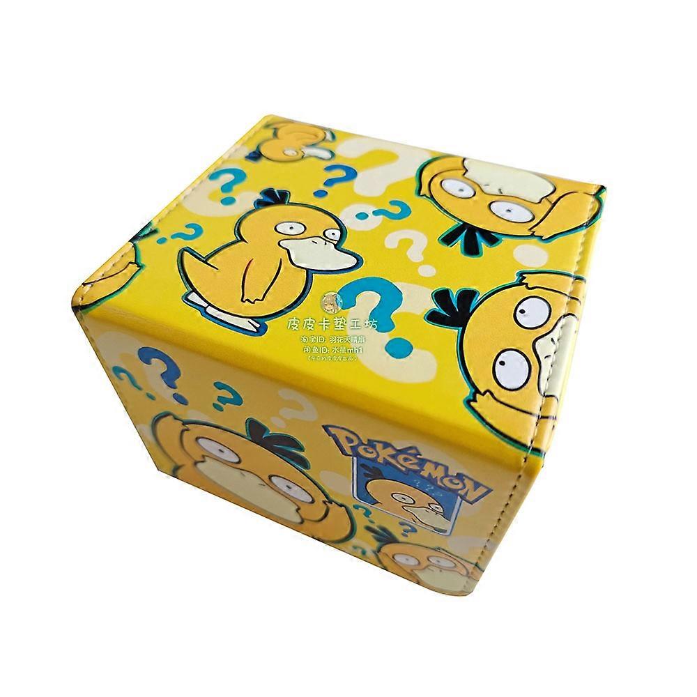 Cartoon Psyduck DTCG DIY Large Capacity Leather Card Box Thickened Anime Game Collection Card Storage Box 10.2x9.5x8.2cm
