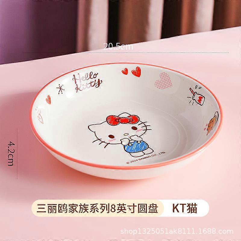 Sanrioed Kuromi My Melody Hellokitty Cinnamoroll Children's Snacks Fruit Plates Cute Cartoon Ceramic Tableware Plates