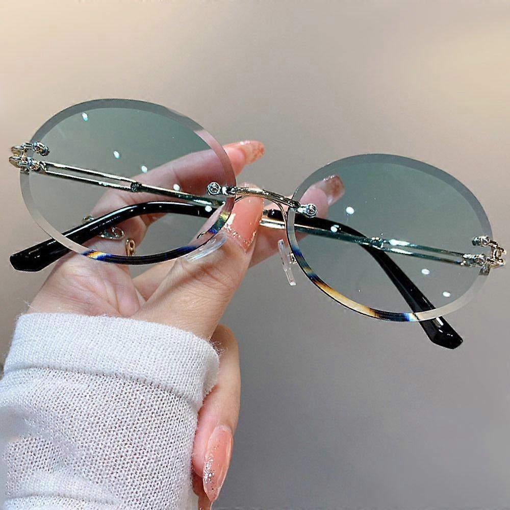 Vintage Metal Oval Sunglasses UV400 Protection Gradient Lens Punk Sun Glasses Rimless Frameless Shades for Women & Men