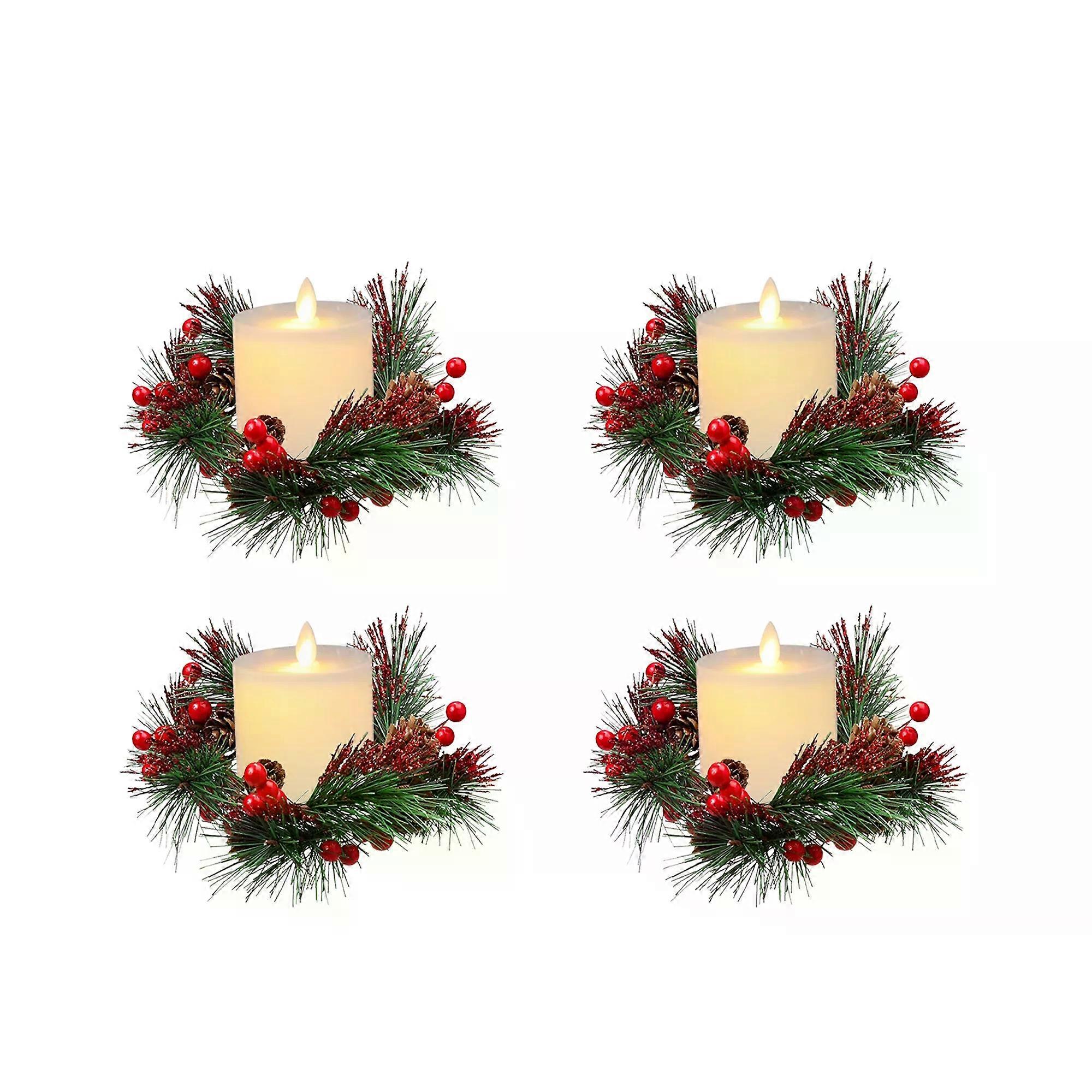 Elegant Christmas Candle Ring with Soft LED Glow and Glass Cup Versatile Holiday Decor for Table and Door