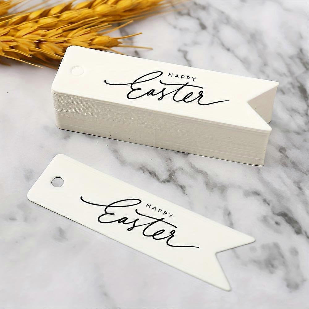 100pcs Bulk White Easter Gift Tags - Large Happy Easter Labels with Cursive Lettering & Elegant Black Arrow - Blank Paper Tags