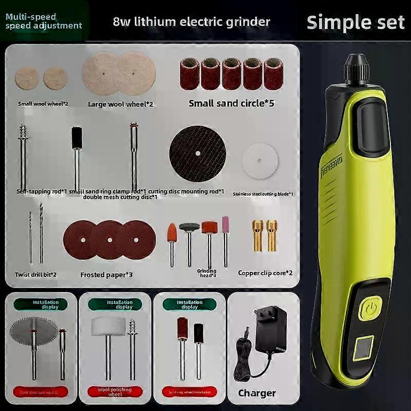 Battery Included : No<br>High-concerned chemical : None<br>is_customized : Yes<br>Weight : 600<br>Dimensions : 20<br>No-Load Speed : 16000<br>Rated Input Power : 8W<br>Power Source : Electricity<br>Certification : CE<br>Disc(Wheel) Type : Sanding Discs<br>Model Number : GREENER<br>Origin : Mainland China<br>Frequency : 50/60<br>Brand Name : Deli<br>Variable Speed : Yes<br>Type : Mini Grinder<br>Power Source : Electricity<br>Use : Home DIY<br>Brand : GREENER<br>Power Supply Mode : Direct current<br>Origin : Mainland China<br>Usage Method : Handheld<br>Material : plastic<br>Is the speed adjustable? : Infinitely Variable Speed<br>Motor type : Brushed Motor<br>