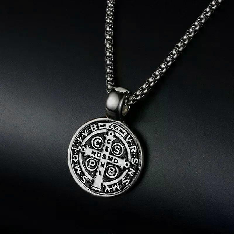 Stainless Steel Saint St. Benedict Collar Medal of San Benito Necklace Men Women Spiritual Virgin Mary Pendant Necklace For Men