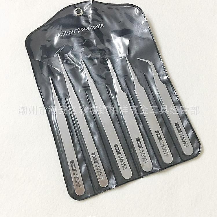 6Pcs/Set Stainless Steel Tweezers Industrial Precision Repair Tool with Bent&Straight Tips Ideal for Professional Repairs&DIY