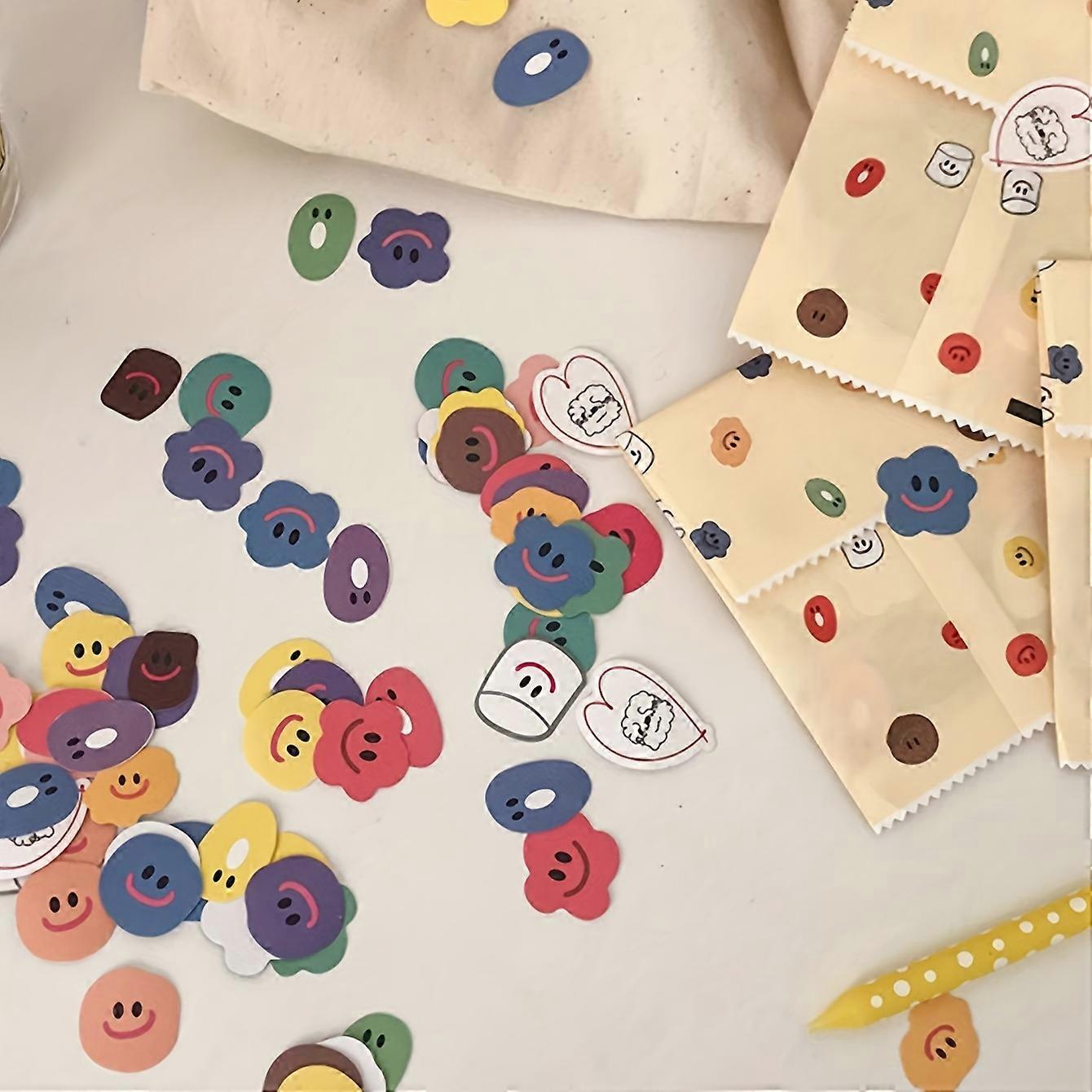 110pcs/1pack Single Pack Anime Cartoon Round Multicolor Semi-matte Self-adhesive Glitter Paper Stickers, Random Pattern