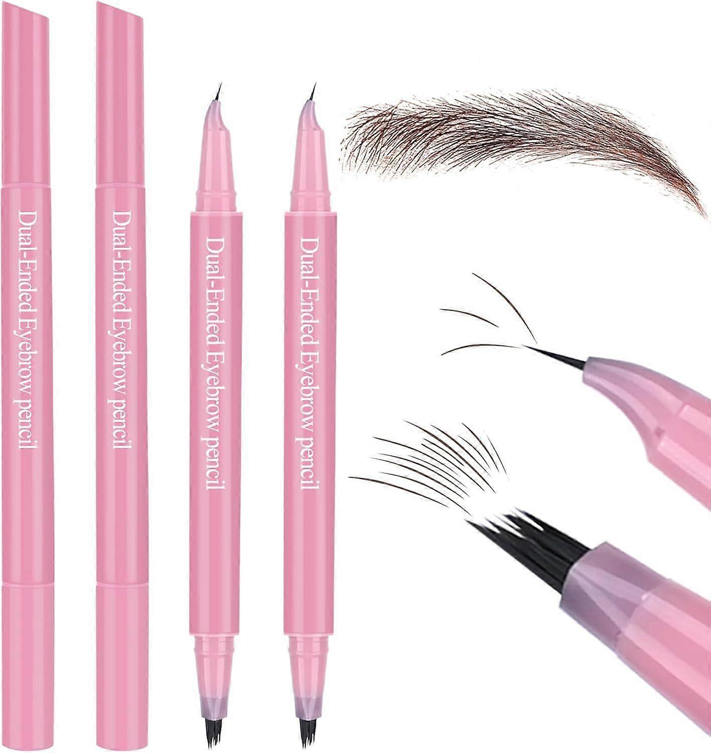 2pcs Waterproof Microblading Eyebrow Pencil, 2-in-1 Dual-Ended Brow Pencil Pencil, Waterproof Hair-Like Liquid Eyebrow Pen, Natural Looking Brows, Lon