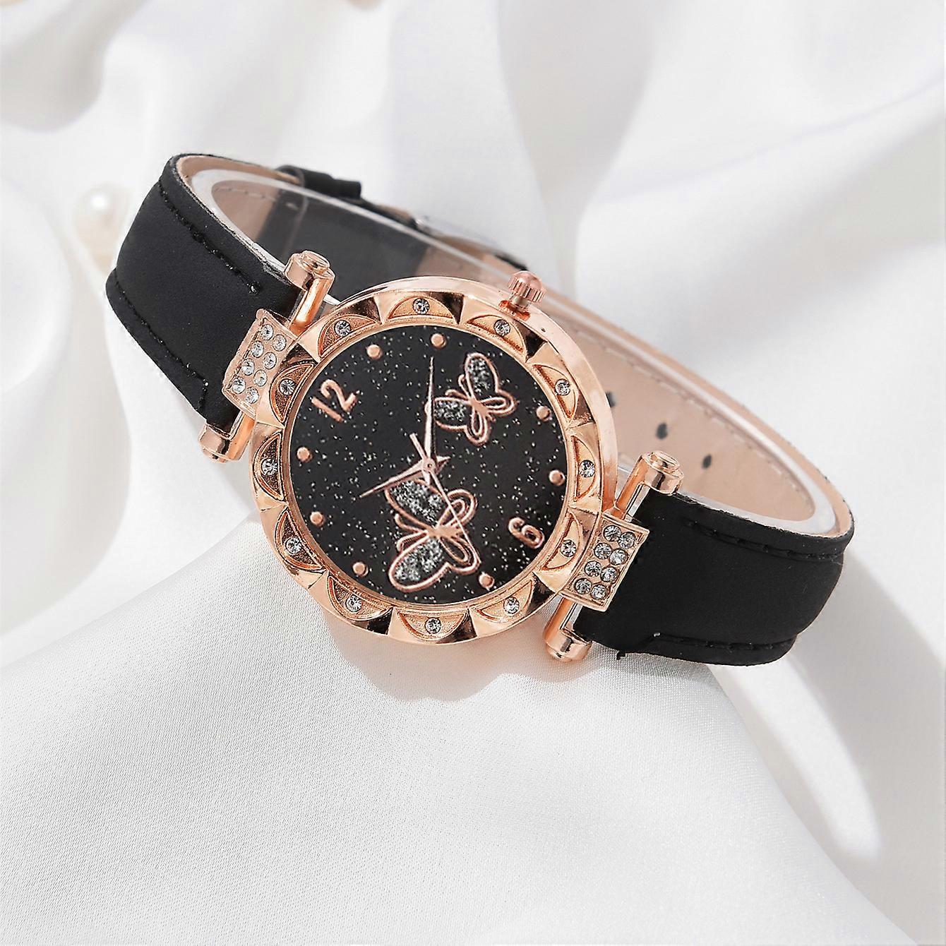 5PCs/set Fashion Butterfly Starry Sky Diamond Embedding Luxury Women's Belt Quartz Wristwatches Diamond Embedding Bracelet Set