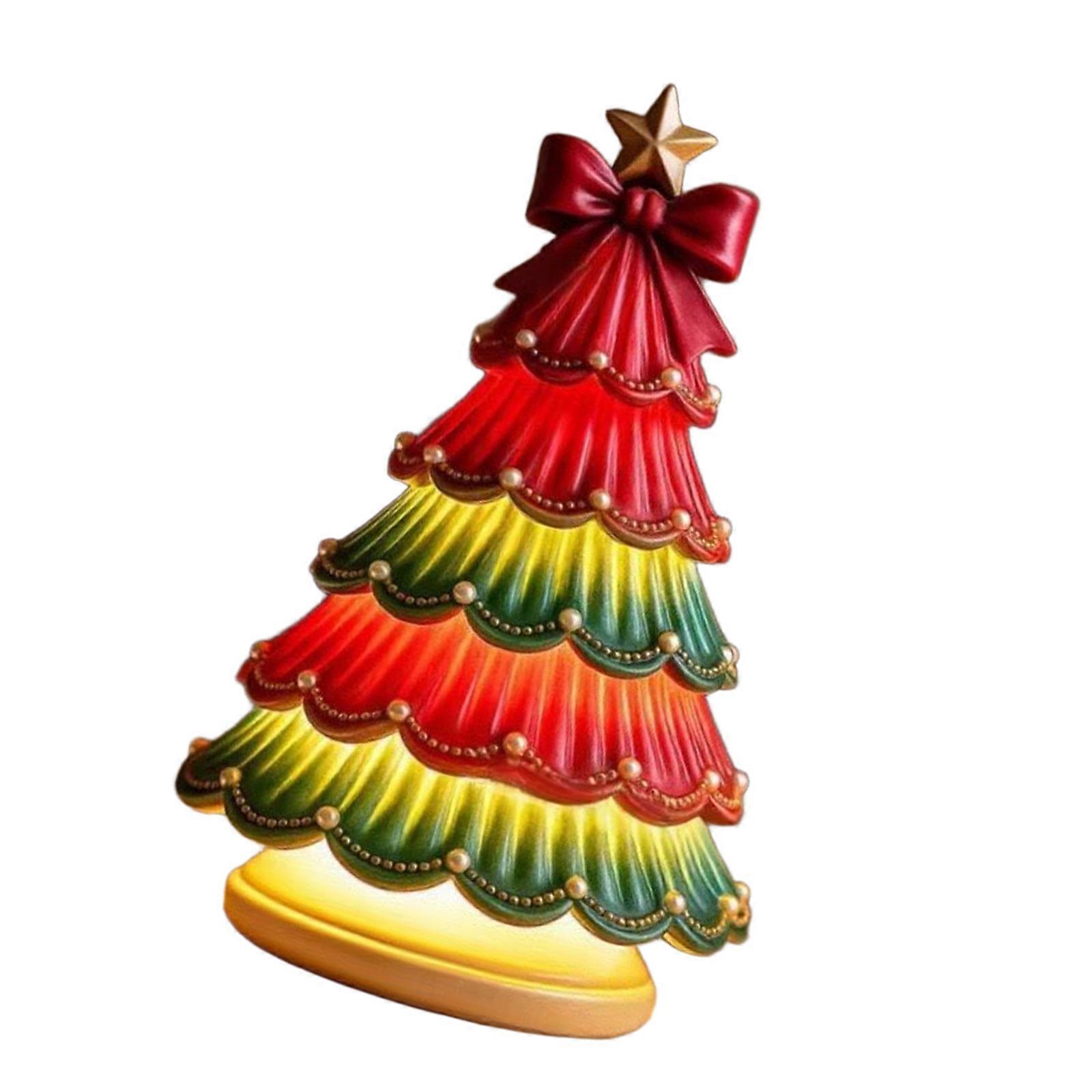 Portable Resin Christmas Tree Night Light Hand Carved Holiday Decors Wireless Design For Indoor Outdoors Festival Table Display Multicolor