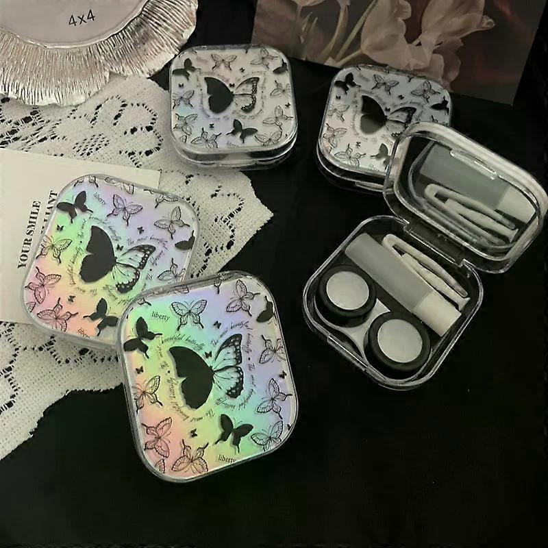 Laser Butterfly Lens Container Women INS Contacts Lens Case Men Color Contact Lenses Storage Box Portable Travel Set