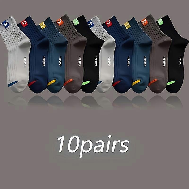 10 Pairs Multi-Color Mixed Mid-Calf Socks - YN Minimalist Letter Design, Unisex Fashion Socks