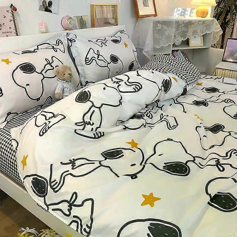 Cute Cartoon Snoopy Bedding Set Girls Boys Dorm Pillow Case Bed Sheet Pillow Case Student Single Double sheet quilt Quilt cover