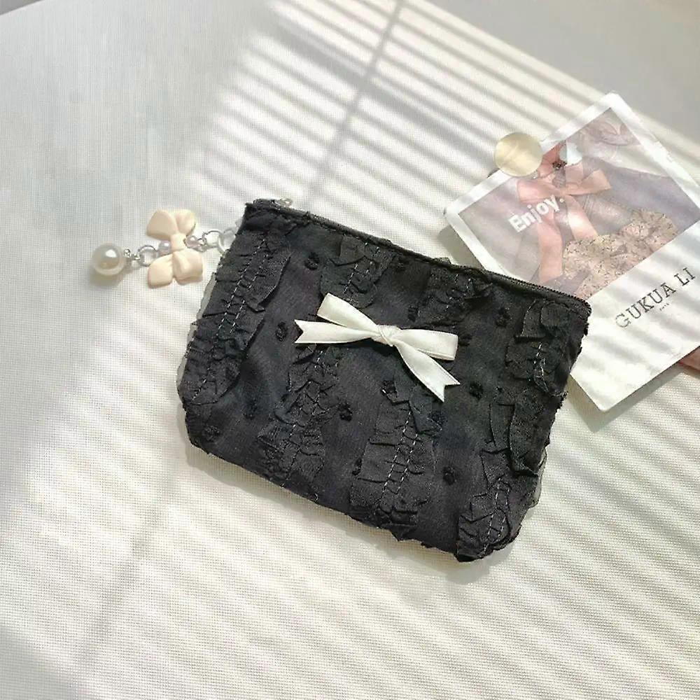Cute Bow Girls Storage Bag Solid Color Soft Coin Purse Lipstick Headphone Bag Large Capacity Lace Clutch Bag