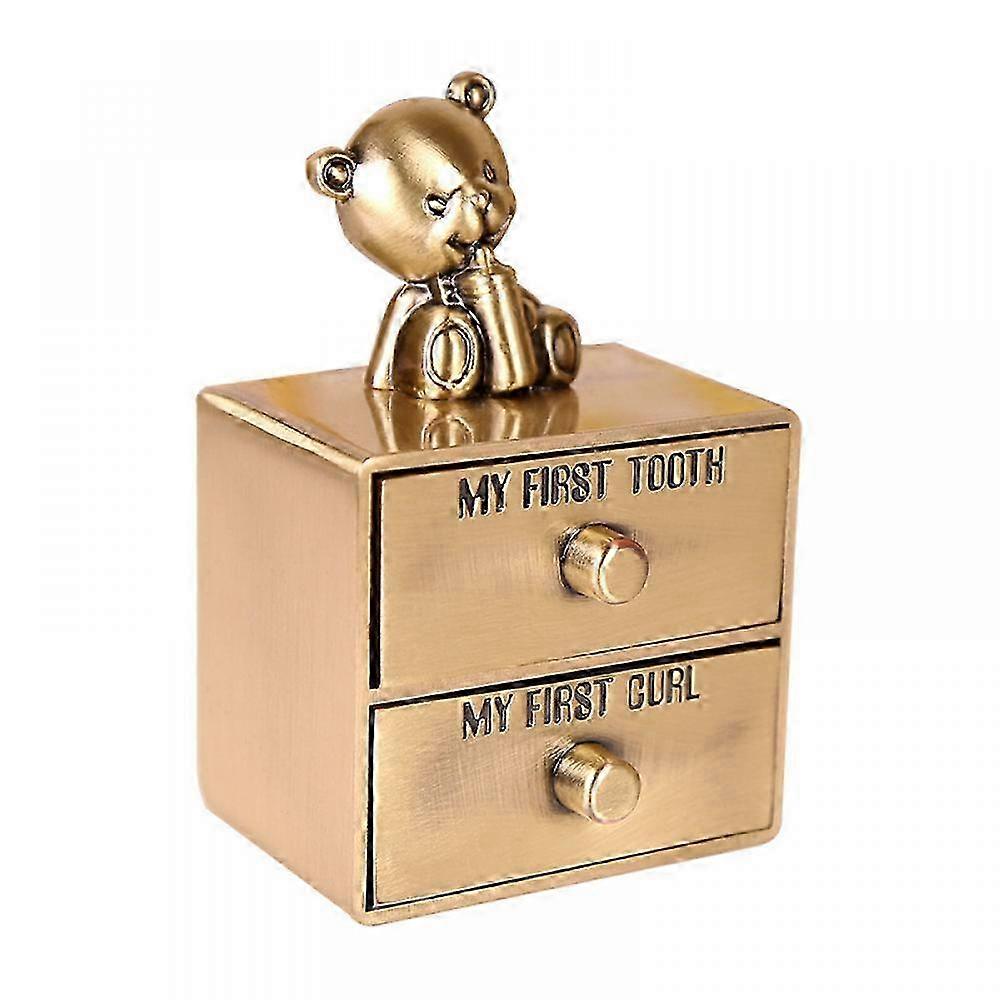 SQCLV Baby First Tooth Keepsake Box - Cartoon Bear Decor, Zinc Alloy Drawer-Type Teeth & Hair Storage Box in Silver