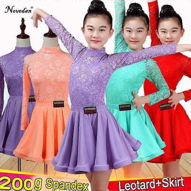 Girls Children Latin Dance Skirt Children Split Lace Dance Performance Test Competition Standard Dress