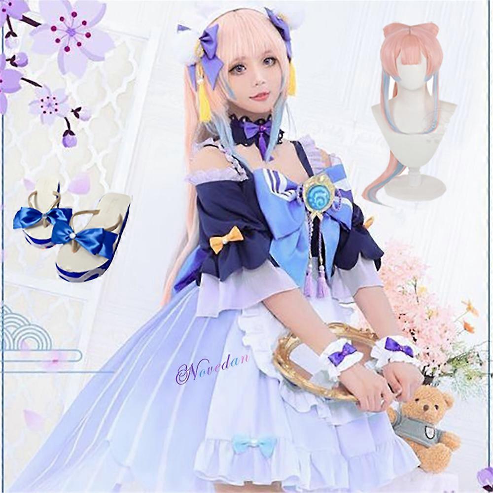 GenshinImpact Cosplay Maid Kokomi Costume Uniform Wig Shoes Sexy Women Halloween Christmas Party Fancy Dress Outfit Full Set