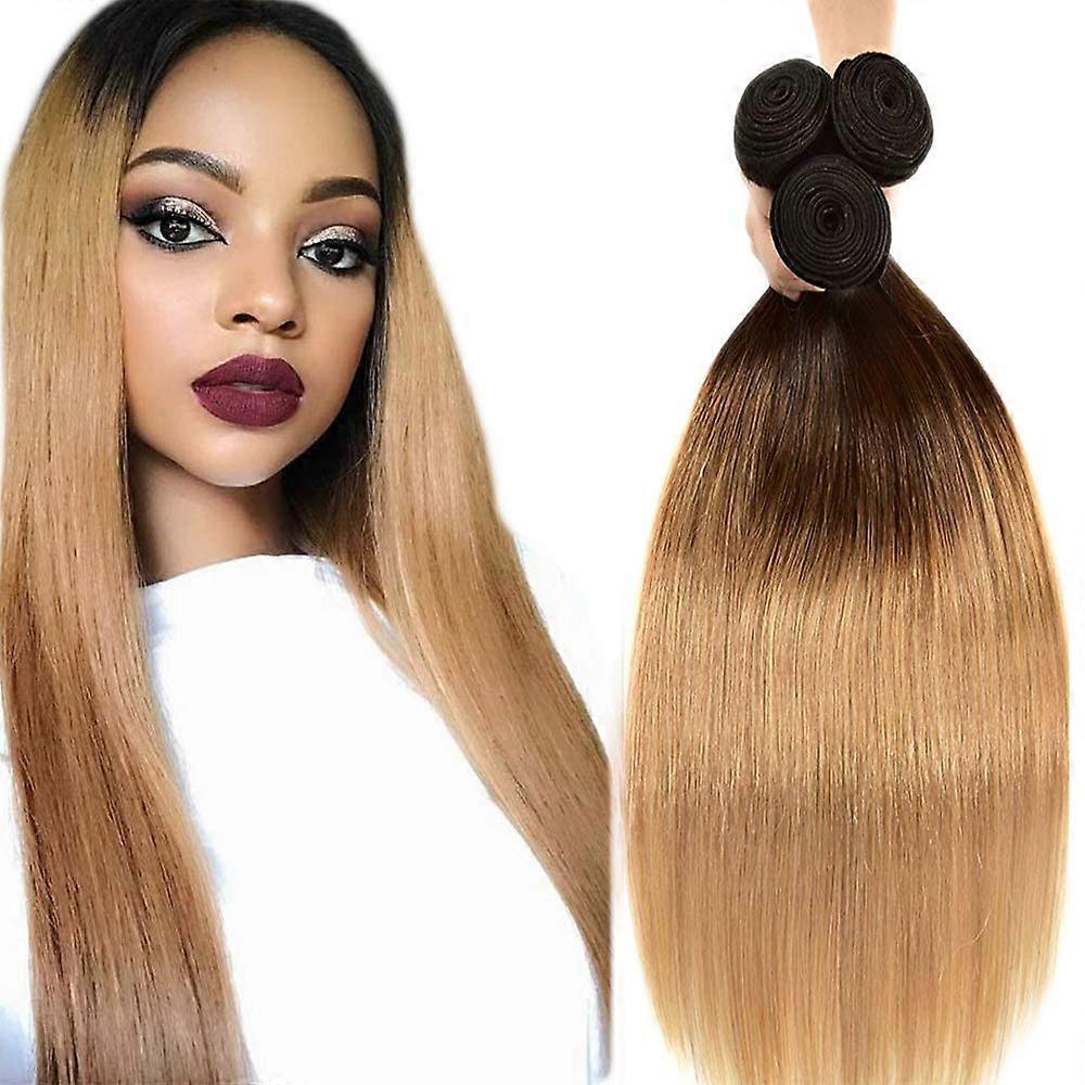 Brazilian Virgin Ombre Hair Bundles 1B/27 Honey Blonde Straight Remy 8A Grade Extensions 1014'