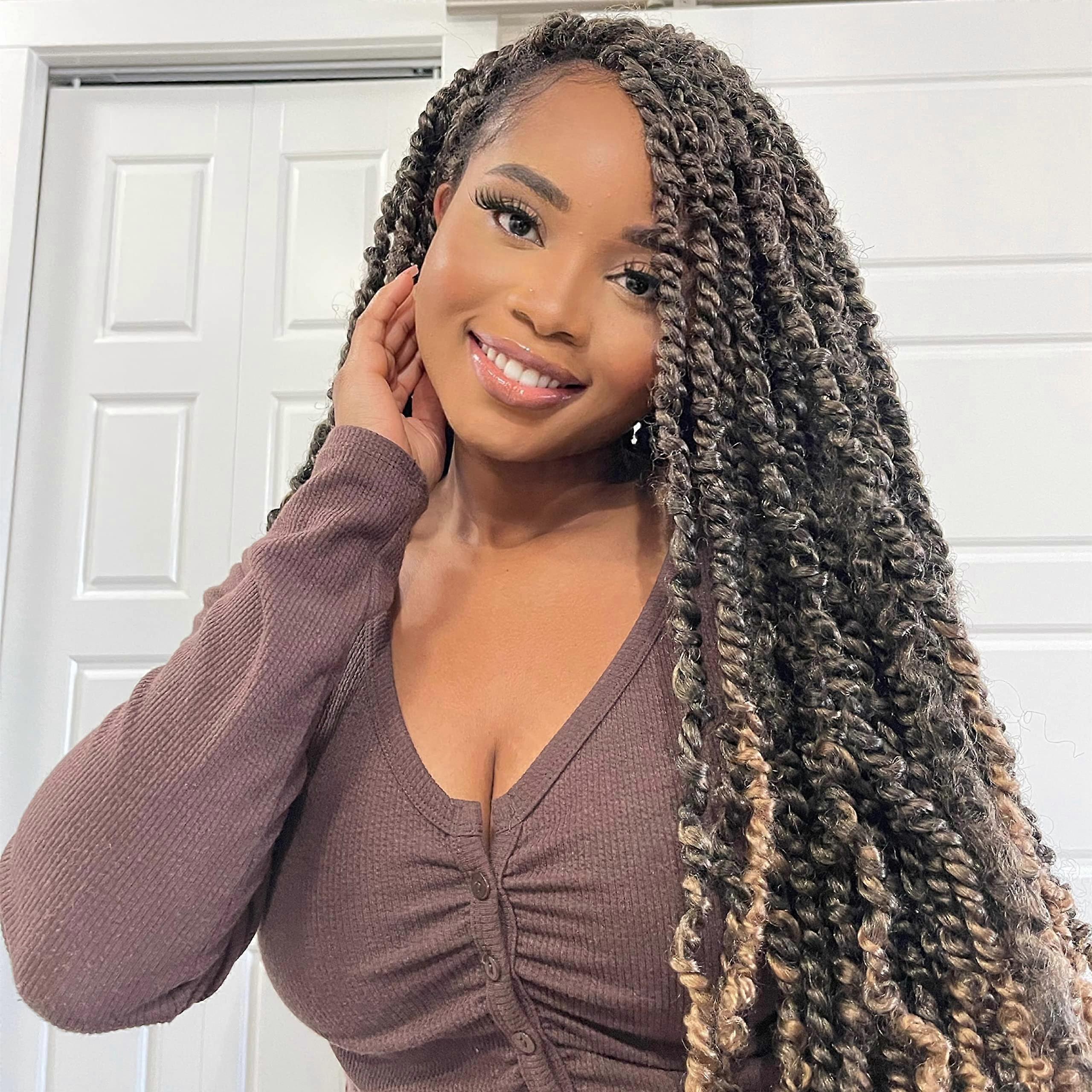30 Inch Passion Twist Crochet Hair 7 Packs PreTwisted PreLooped Long Curly Extensions T27
