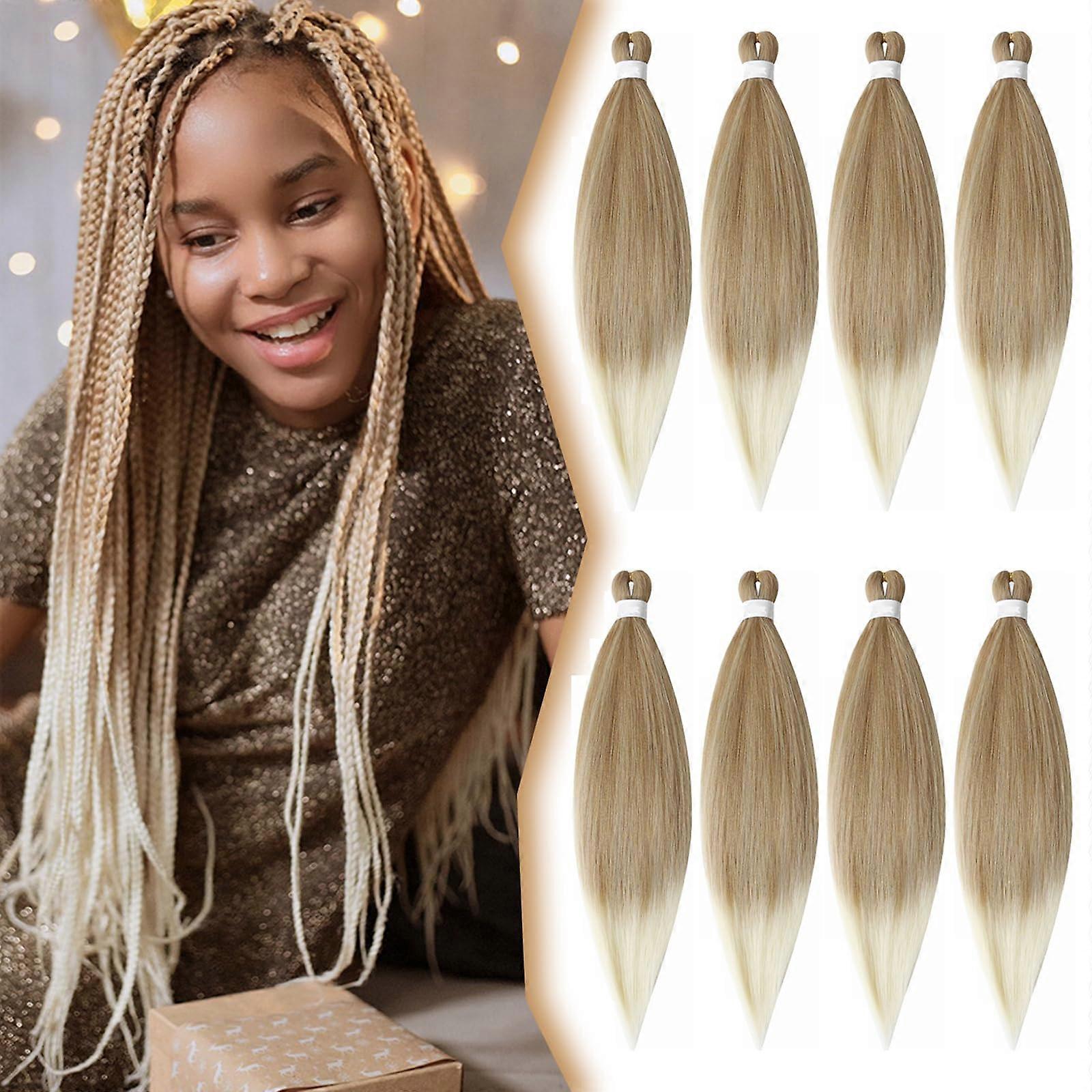 Pre Stretched Braiding Hair 30 Inch 8 Packs for Black Women, 27/613 Color Synthetic Hair Extensions