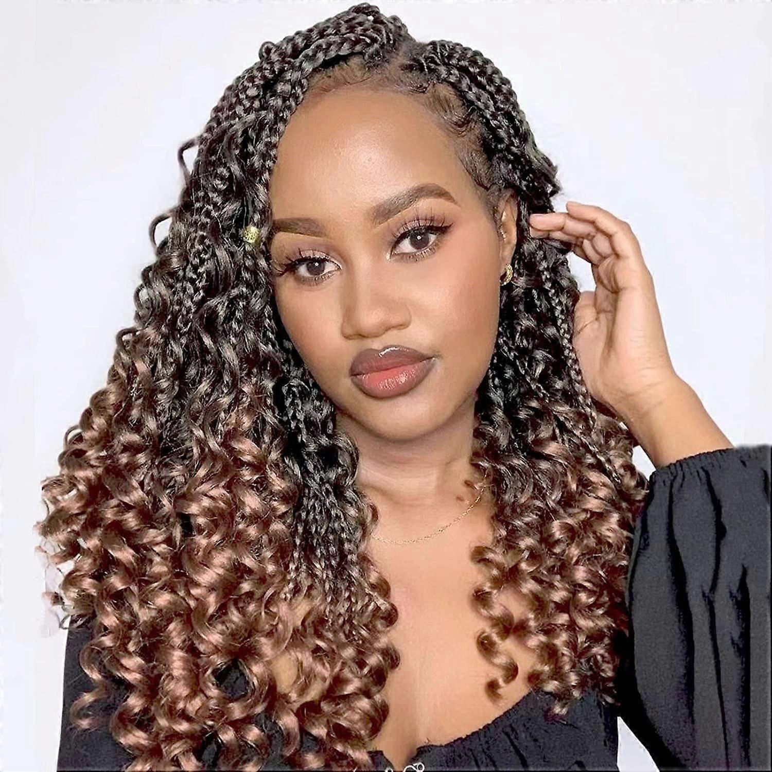 14 Inch Box Braids Crochet Hair T27 Pretwisted Boho Style with Curly Ends Synthetic Extensions 8 Pack