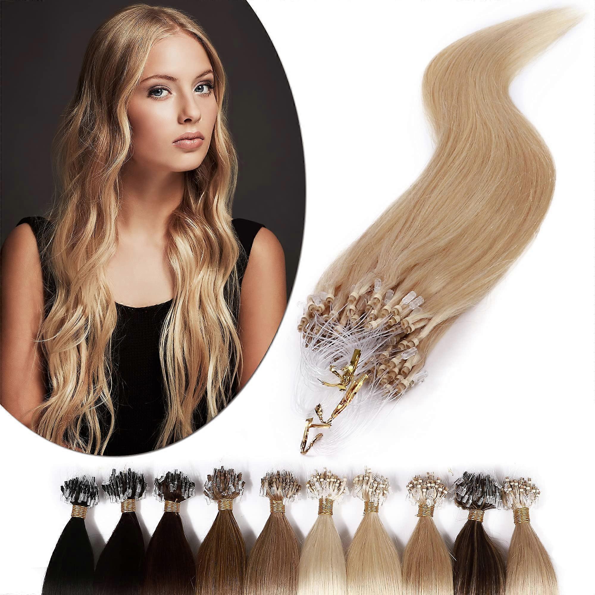 24 Inch Human Hair Extensions Natural Blonde Balayage Micro Bead Loop I Tip Heat Styling Ready