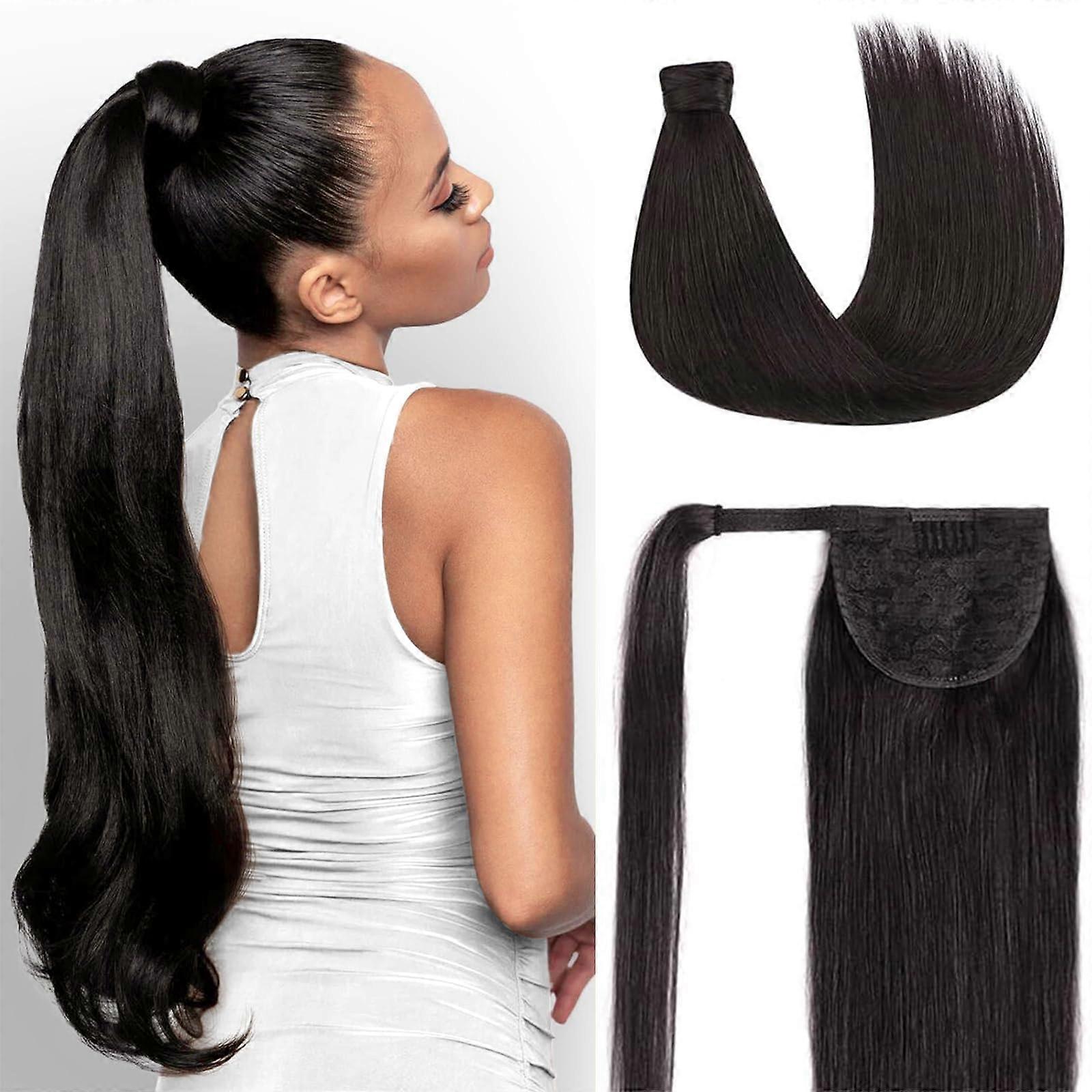 Human Hair Ponytail Extension Natural Black Remy Clip In Silky Straight 18 inch Instant Length & Volume