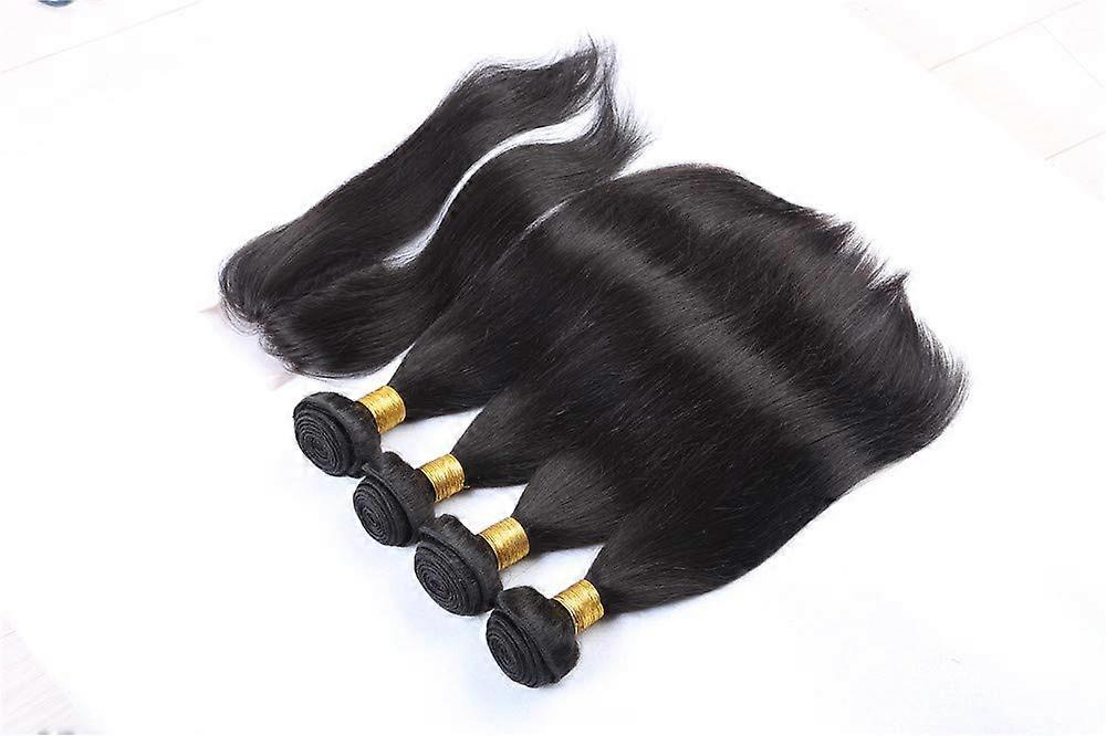 Remy Human Hair Extensions Silk Straight Weave Bundles with 20in Closure 24 26 28in Virgin Indian Hair #1B Natural Color