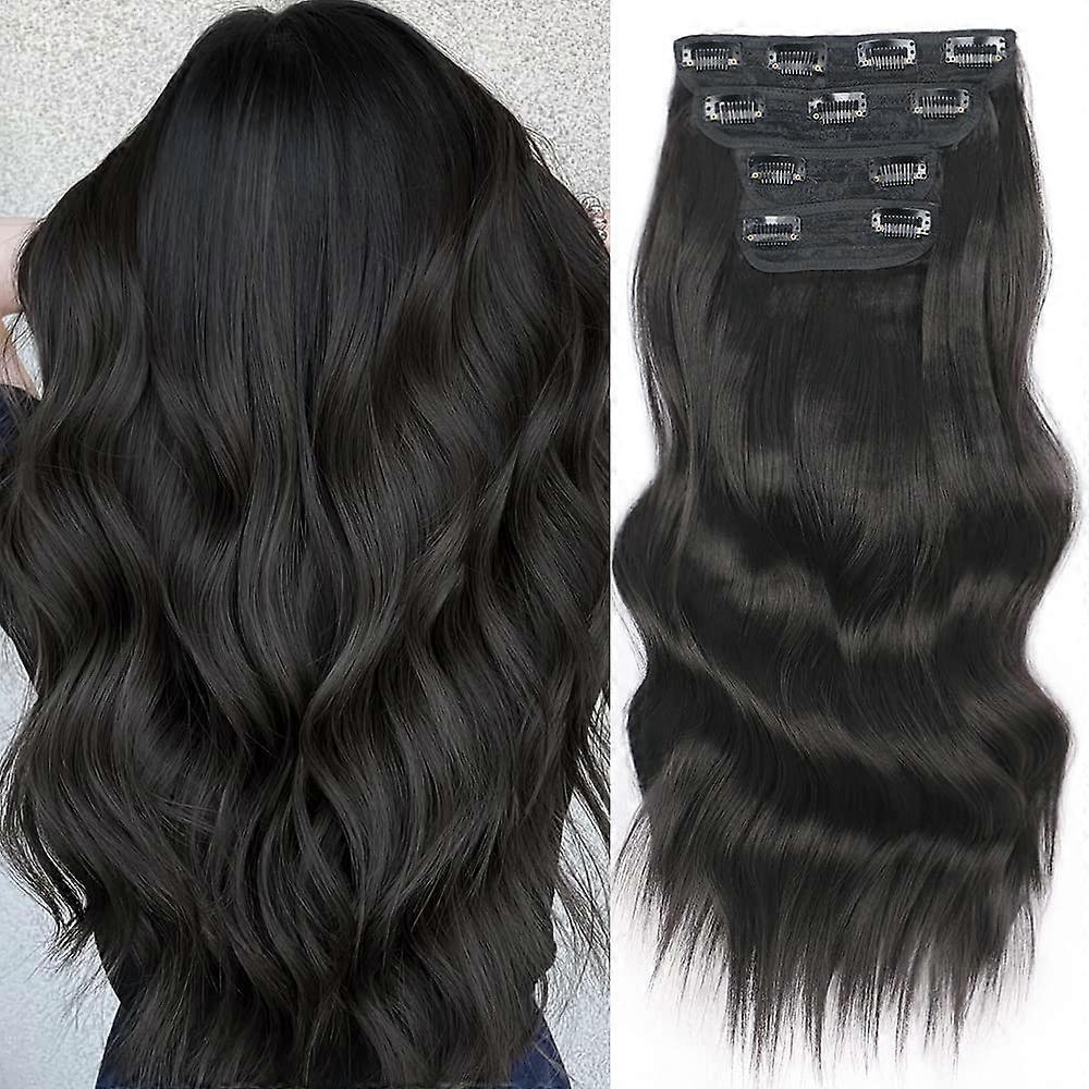 20 Inch Natural Black Clip in Hair Extensions Synthetic Beach Waves NoGlue HeatResistant for Women