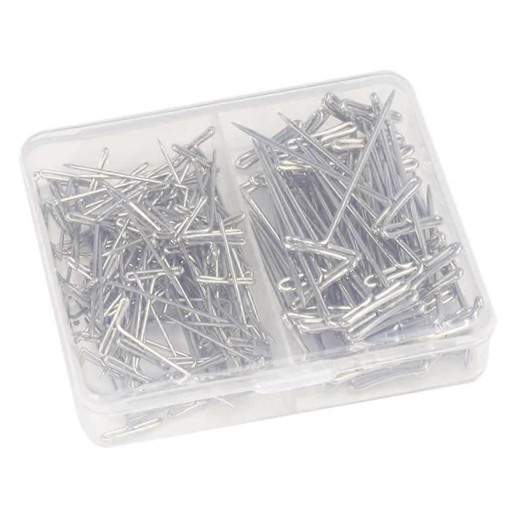 160pcs Silver T Pins for Wigs and Crafts, Dual Length Grip, with Storage Box