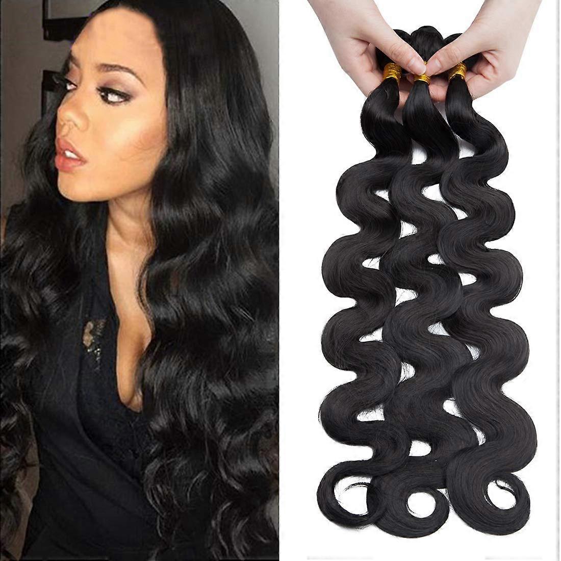 Synthetic Body Wave Hair Extensions for Women, 3 Brazilian Bundles, Natural Black, Soft Human Hair Feel
